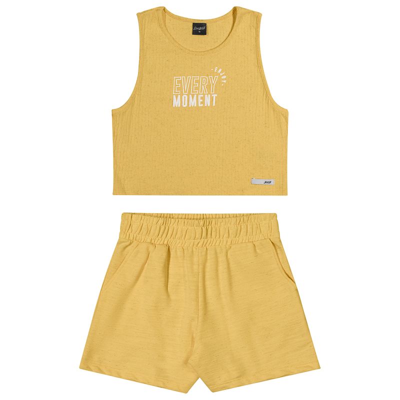 Conjunto Feminino Juvenil Beats 271466 Material: CANELADO LINHO E MOLETINHO DE LINHO Manga: REGATA Abertura: FECHADA Estampa com Relevo