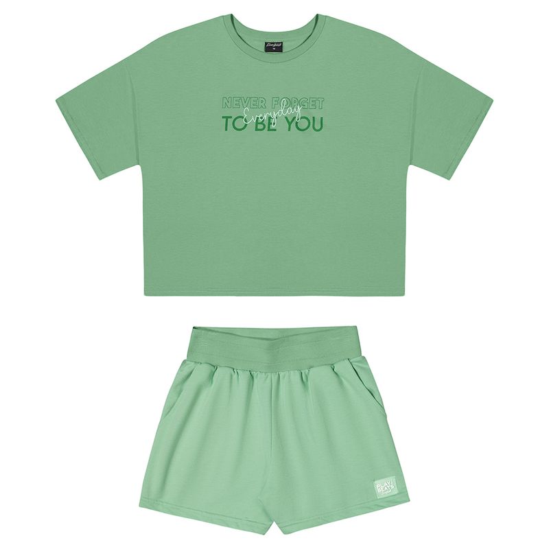 Conjunto Feminino Juvenil Beats 271514 Material: MEIA MALHA PENTEADA E MOLETOM COLORS SEM FELPA Manga: MANGA CURTA Abertura: FECHADA Blusa com Comprimento Intermediário