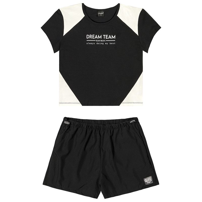 Conjunto Feminino Juvenil Beats 271515 Material: COTTON LEVE E MICROFIBRA COM ELASTANO Manga: MANGA CURTA Abertura: FECHADA Blusa Comprimento Cropped
