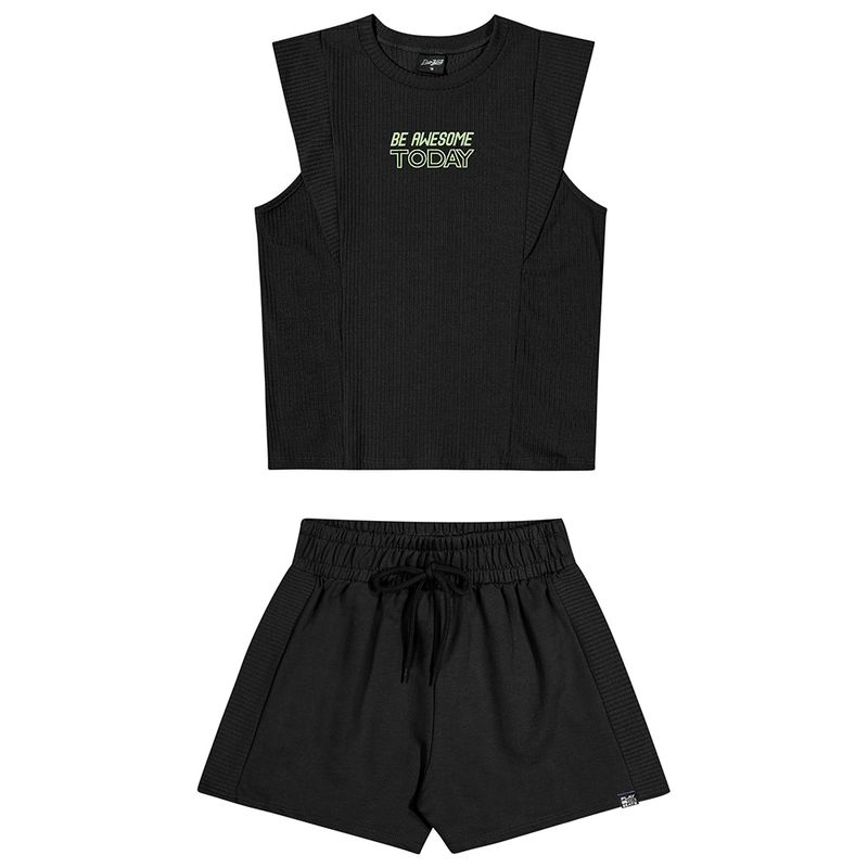 Conjunto Feminino Juvenil Beats 271526 Material: MALHA CANELADA E MOLETOM SEM FELPA Manga: REGATA Abertura: FECHADA Blusa com Comprimento Intermediário