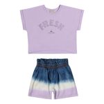 Conjunto Feminino Juvenil Coloritta 75043 Material: BLUSA- COTTON / SHORTS - JEANS Manga: MANGA CURTA Abertura: FECHADA Estampa c/ Puff