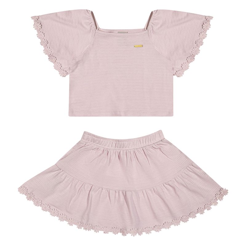 Conjunto Feminino Juvenil Coloritta 75184 Material: MALHA TEXTURIZADA WIND E MEIA MALHA PENTEADA Manga: MANGA CURTA Abertura: FECHADA Aplique de Flor