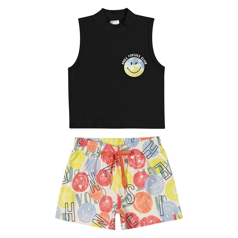 Conjunto Feminino Juvenil Elian 251666 Material: REGATA- MALHA/ SHORTS- COTTON Manga: REGATA Abertura: FECHADA Estampa C/ Glitter Cadarço C/ Lurex