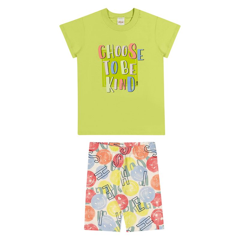 Conjunto Feminino Juvenil Elian 251668 Material: BLUSA- MALHA/ CICLISTA- COTTON Manga: MANGA CURTA Abertura: FECHADA Estampa C/ Glitter