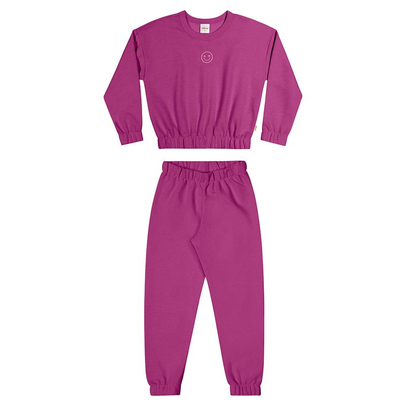 Conjunto Feminino Juvenil Elian 251738 Material: MOLETOM Manga: MANGA LONGA COM PUNHO Barra: BARRA COM PUNHO Abertura: FECHADA Bordado
