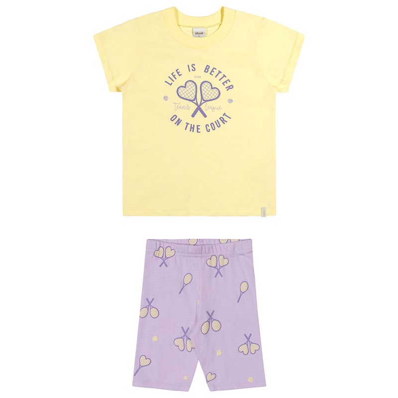 Conjunto Feminino Juvenil Elian 251782 Material: MEIA MALHA PENTEADA E COTTON LEVE Manga: MANGA CURTA Abertura: FECHADA Estampa Puff com Glitter