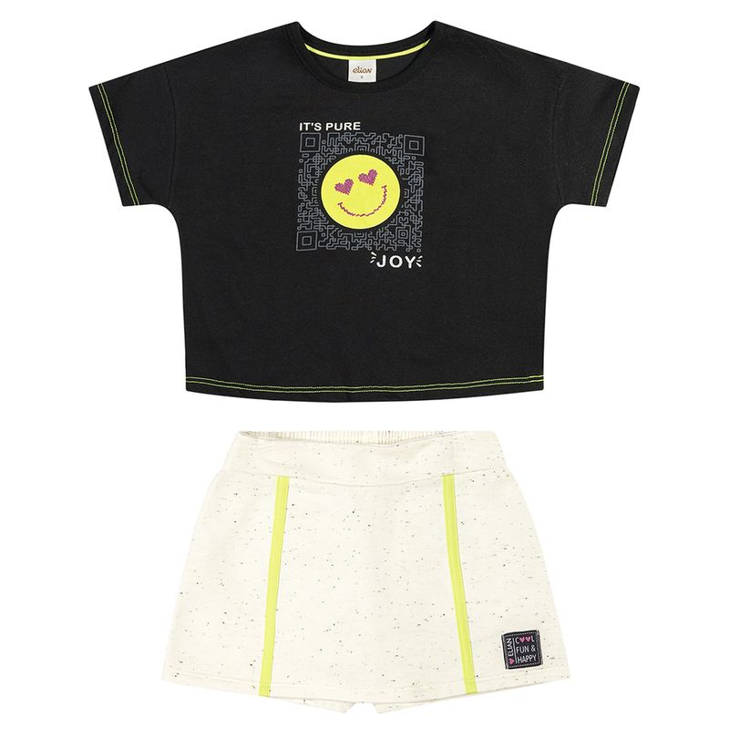 Conjunto Feminino Juvenil Elian 251815 Material: MEIA MALHA E MOLETOM BOTONÊ Manga: MANGA CURTA Abertura: FECHADA Estampa com Glitter