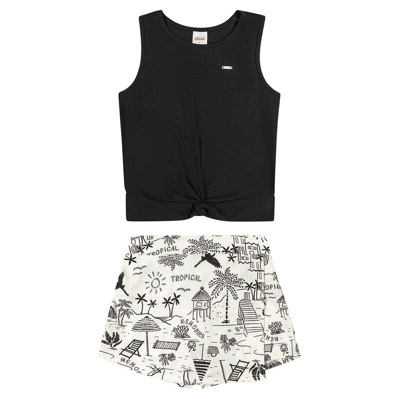 Conjunto Feminino Juvenil Elian 251819 Material: COTTON LEVE E MALHA CANELADA Manga: REGATA Abertura: FECHADA Estampa com Imita Foil
