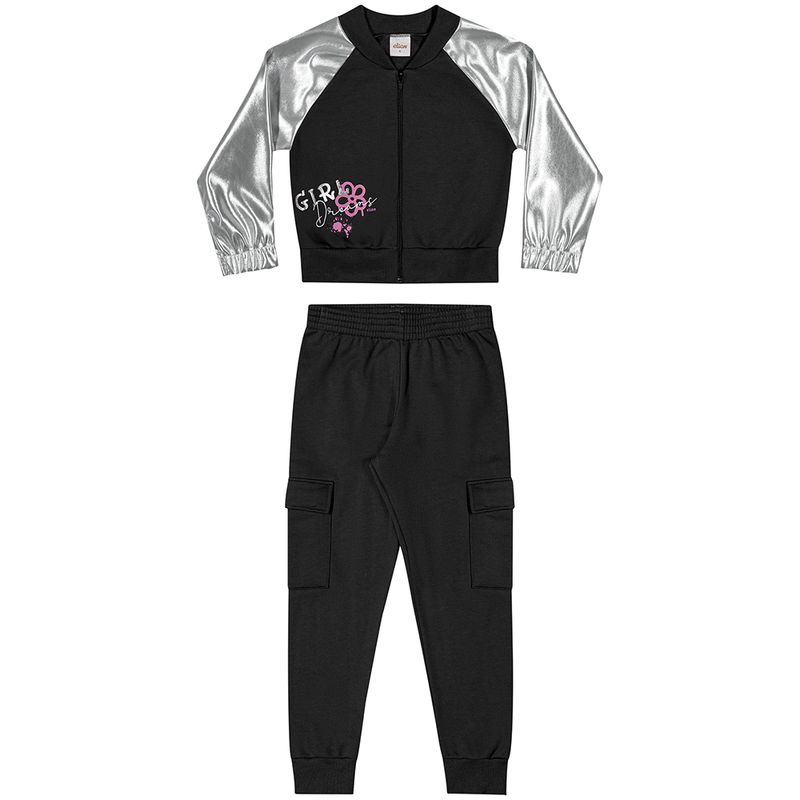 Conjunto Feminino Juvenil Elian 251860 Material: MOLETOM FELPADO E PU HOLGRÁFICO Manga: MANGA LONGA COM PUNHO Barra: BARRA COM PUNHO Abertura: ZIPER Estampa com Foil
