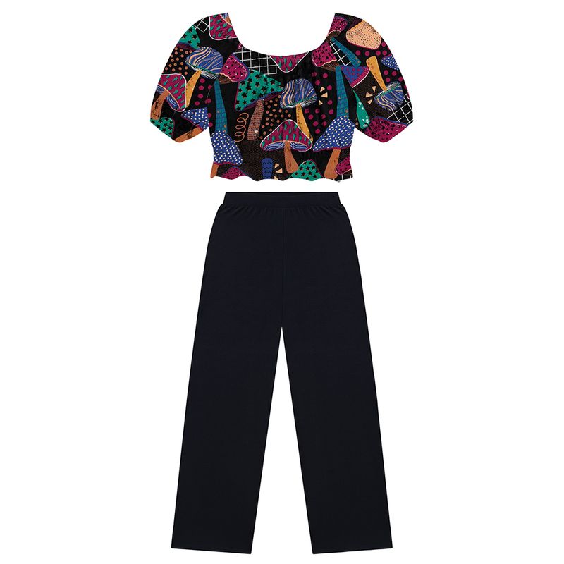 Conjunto Feminino Juvenil Hits 35339 Material: MALHA CREPE MVS E MALHA CREPE MIRAGE Manga: MANGA BUFANTE Barra: BARRA TRADICIONAL Abertura: FECHADA Modelagem Cropped