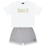 Conjunto Feminino Juvenil Kamylus 63399 Material: MEIA MALHA PENTEADA E MOLETINHO Manga: MANGA CURTA Abertura: FECHADA