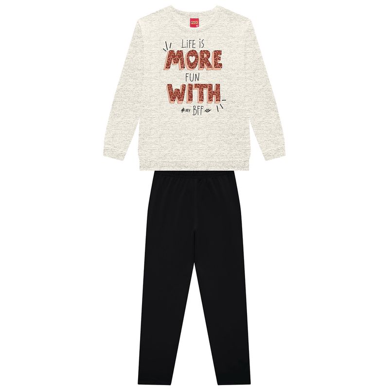 Conjunto Feminino Juvenil Kyly 1000791 Material: MOLETOM FELPADO E COTTON Manga: MANGA LONGA COM PUNHO Barra: BARRA TRADICIONAL Abertura: FECHADA Estampa Localizada 3D Relevo