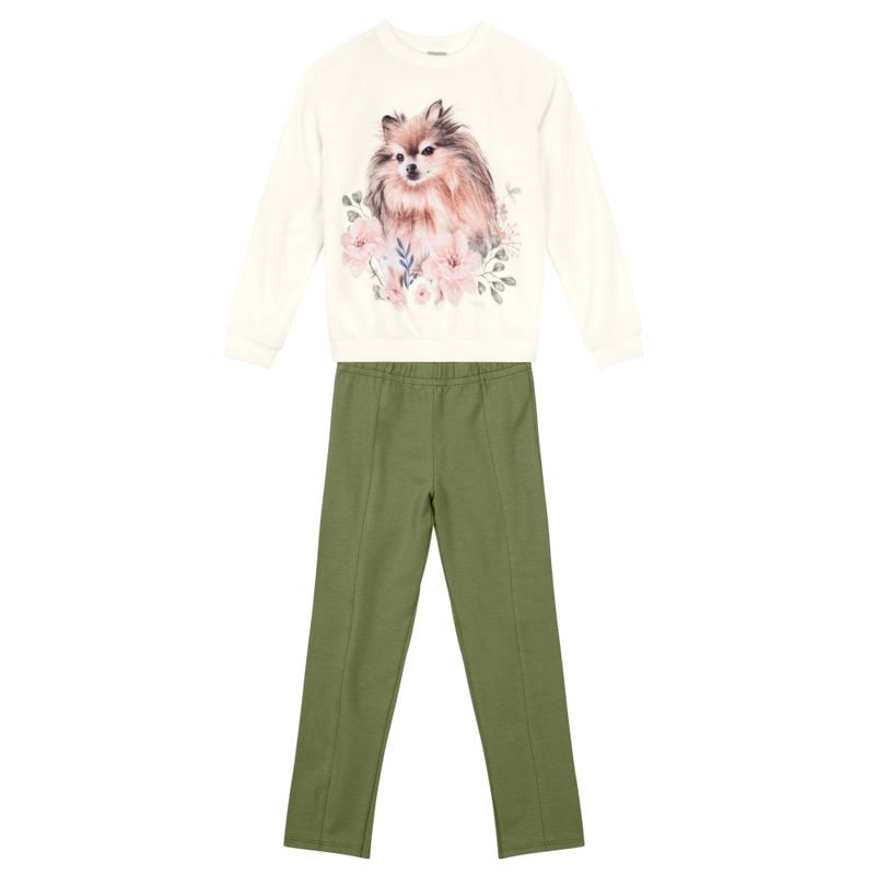 Conjunto Feminino Juvenil Mundi 55289 Material: PELO/ MOLECOTTON Manga: MANGA LONGA COM PUNHO Barra: BARRA TRADICIONAL Abertura: FECHADA Bordado c/ Paetê