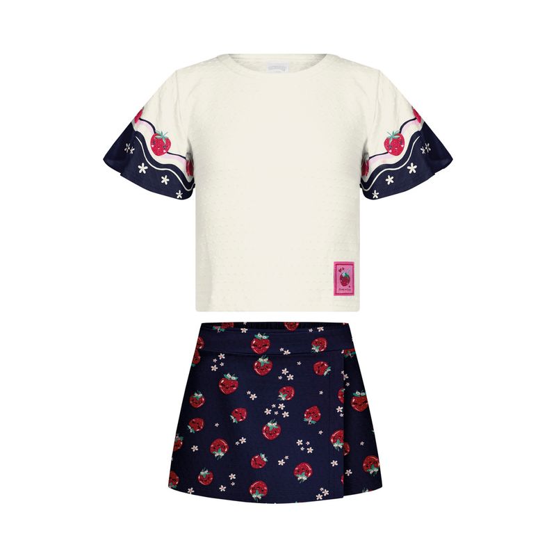 Conjunto Feminino Primeiros Passos Alakazoo 0086 Material: MALHA NIKKO Manga: MANGA CURTA Abertura: FECHADA Shorts Saia