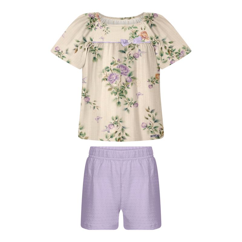 Conjunto Feminino Primeiros Passos Alakazoo 0163 Material: MEIA MALHA PENTEADA E MALHA NIKKO Manga: MANGA CURTA Abertura: FECHADA
