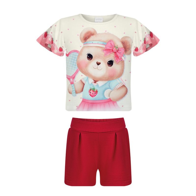 Conjunto Feminino Primeiros Passos Alakazoo 0247 Material: MOLETINHO SOFT E MALHA NIKKO Manga: MANGA CURTA Abertura: FECHADA Aplique de Strass