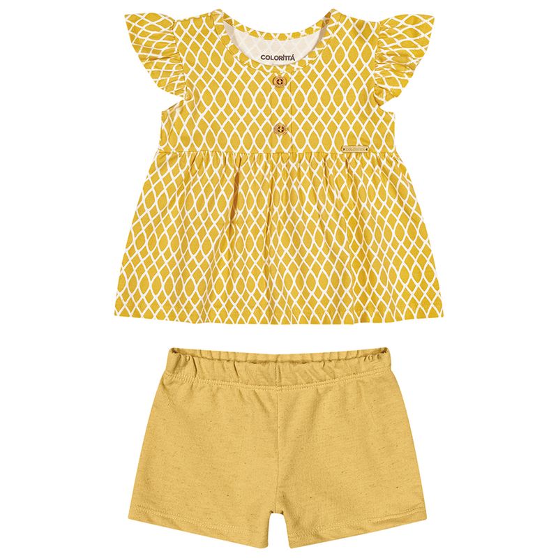 Conjunto Feminino Primeiros Passos Coloritta 71116 Material: COTTON LEVE E MOLETINHO DE LINHO Manga: MANGA CURTA Abertura: FECHADA