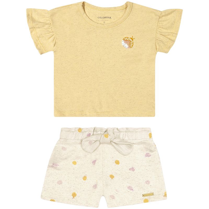 Conjunto Feminino Primeiros Passos Coloritta 71122 Material: MALHA ECO LINHO E MOLETOM LINHO ESTAMPADO Manga: MANGA CURTA Abertura: FECHADA Bordado