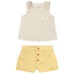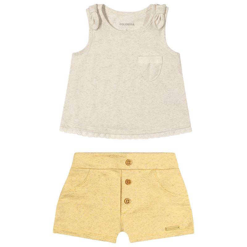 Conjunto Feminino Primeiros Passos Coloritta 71126 Material: MALHA ECO LINHO E MOLETOM ECO LINHO Manga: REGATA Abertura: FECHADA Aplique Renda