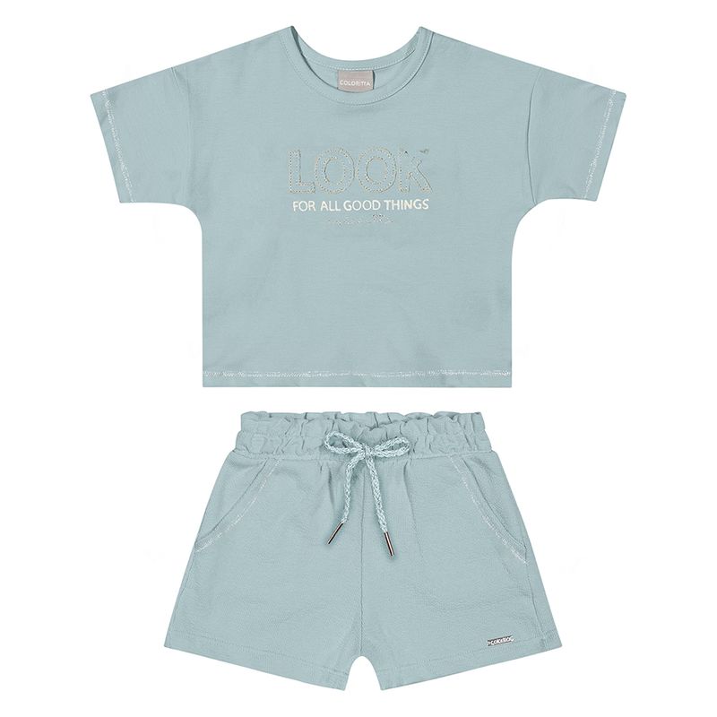 Conjunto Feminino Primeiros Passos Coloritta 73197 Material: COTTON LEVE E MOLETINHO CRAFT Manga: MANGA CURTA Abertura: FECHADA Bordado com Fio Lurex