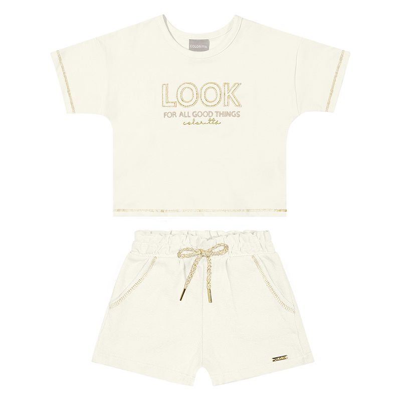 Conjunto Feminino Primeiros Passos Coloritta 73197 Material: COTTON LEVE E MOLETINHO CRAFT Manga: MANGA CURTA Abertura: FECHADA Bordado com Fio Lurex