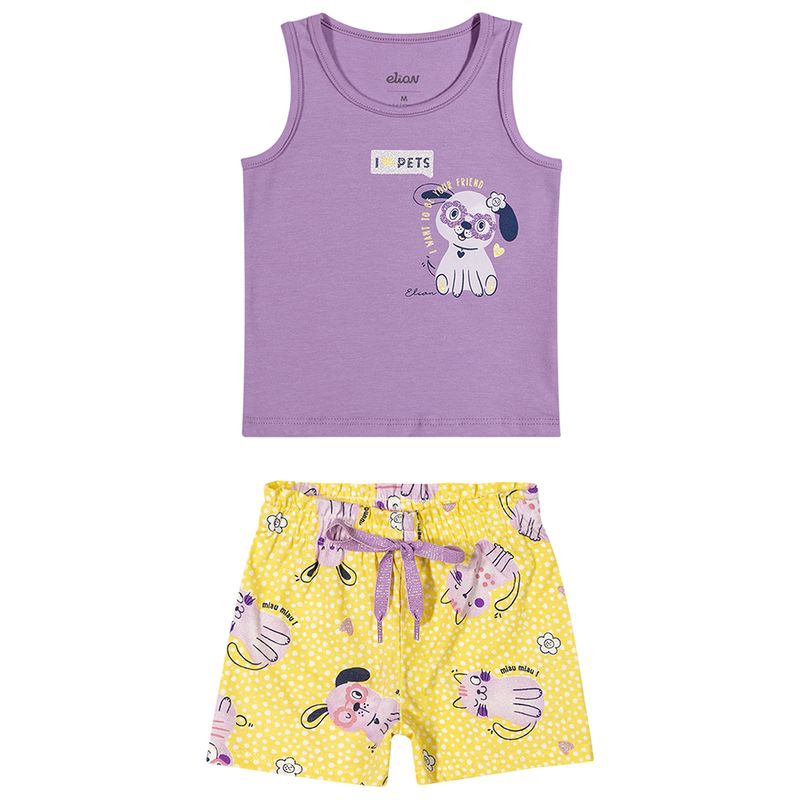 Conjunto Feminino Primeiros Passos Elian 211515 Material: COTTON LEVE E MEIA MALHA Manga: REGATA Abertura: FECHADA Estampa com Glitter Cadarço com Lurex