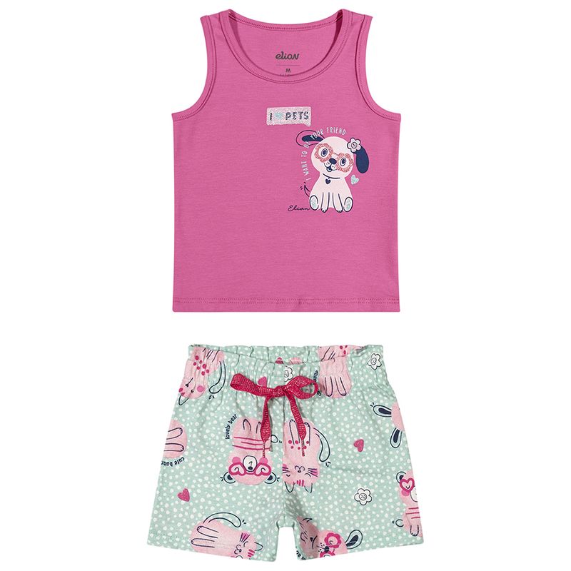 Conjunto Feminino Primeiros Passos Elian 211515 Material: COTTON LEVE E MEIA MALHA Manga: REGATA Abertura: FECHADA Estampa com Glitter Cadarço com Lurex