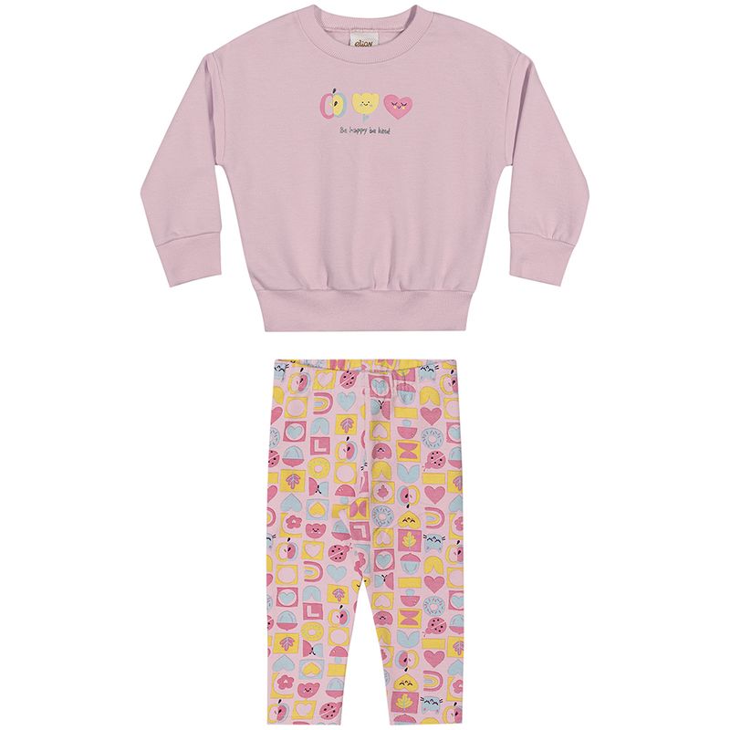 Conjunto Feminino Primeiros Passos Elian 211551 Material: MOLETOM FELPADO E MOLECOTTON FELPADO Manga: MANGA LONGA COM PUNHO Barra: BARRA TRADICIONAL Abertura: FECHADA Estampa com Puff