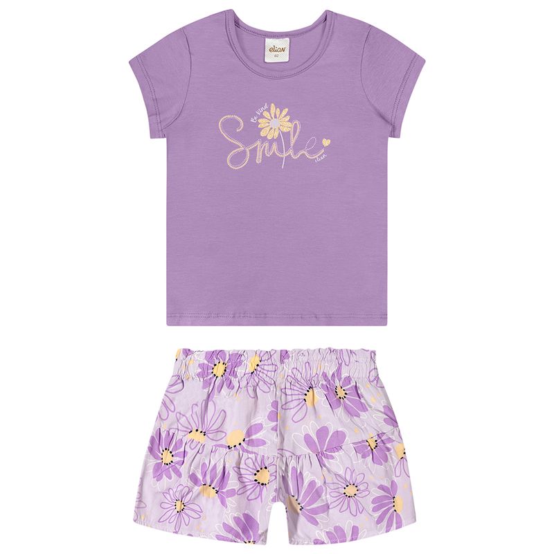 Conjunto Feminino Primeiros Passos Elian 232021 Material: COTTON LEVE E VISCOSE ESTAMPADA Manga: MANGA CURTA Abertura: FECHADA Estampa Puff com Glitter