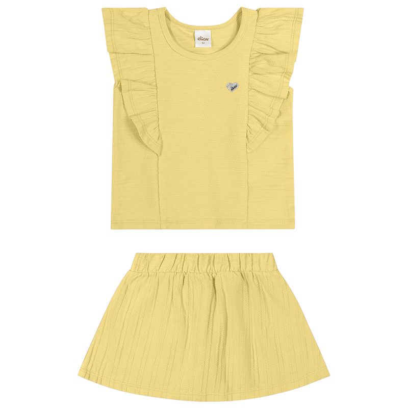 Conjunto Feminino Primeiros Passos Elian 232033 Material: MEIA MALHA TRABALHADA E MEIA MALHA PENTEADA Manga: MANGA CURTA Abertura: FECHADA