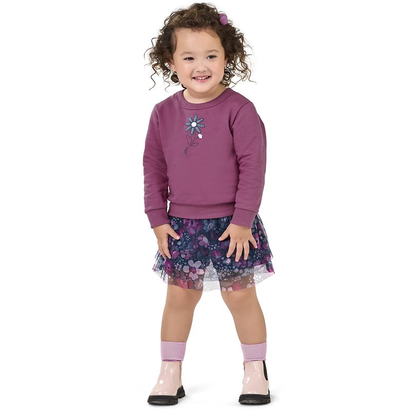 Conjunto Feminino Primeiros Passos Elian 232140 Material: MOLETOM FELPADO, TULE E MEIA MALHA Manga: MANGA LONGA COM PUNHO Abertura: FECHADA Shorts Interno Estampa Puff com Imita Foil