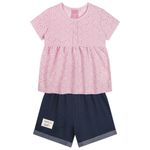 Conjunto Feminino Primeiros Passos Kamylus 53703 Material: LAISE E COTTON JEANS Manga: MANGA CURTA Abertura: FECHADA Botão com Glitter