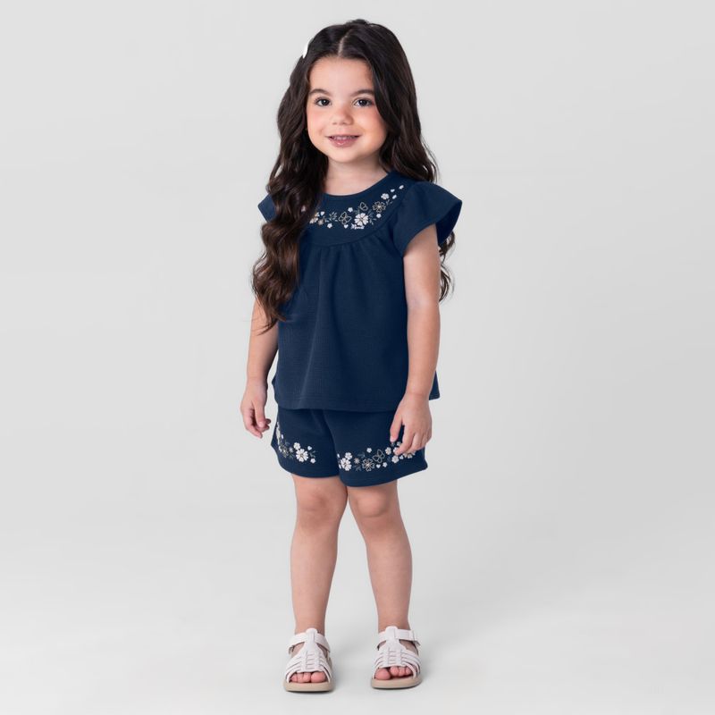 Conjunto Feminino Primeiros Passos Mundi 26395 Material: RIBANA AURORA Manga: MANGA CURTA Abertura: FECHADA Estampa Puff