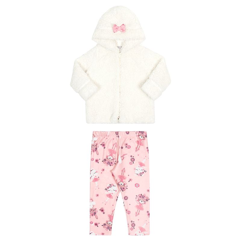 Conjunto Jaqueta e Calça de Menina Bebê Alakazoo em Pelo, Meia Malha e Moletinho Soft