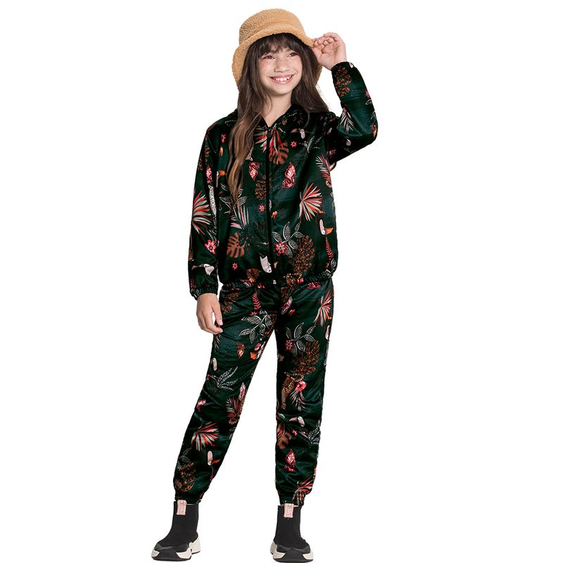 Conjunto Jaqueta e Calça de Menina Juvenil Alakazoo em Tecido Poly Satin e Malha Microsoft