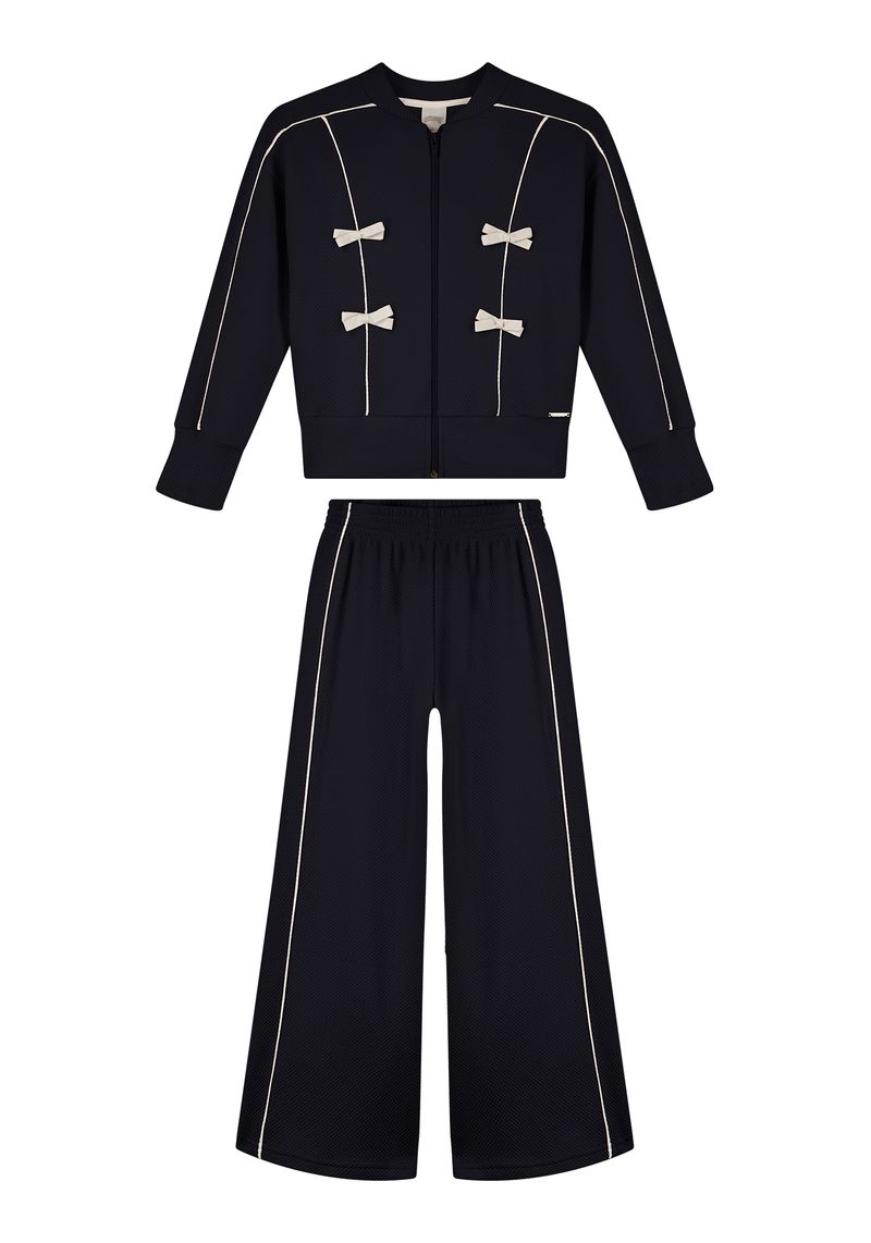 Conjunto Jaqueta e Calça Feminina Infantil Alakazoo A8178 Material: SOFT TECH Manga: MANGA LONGA COM PUNHO Barra: FLARE Abertura: ZIPER