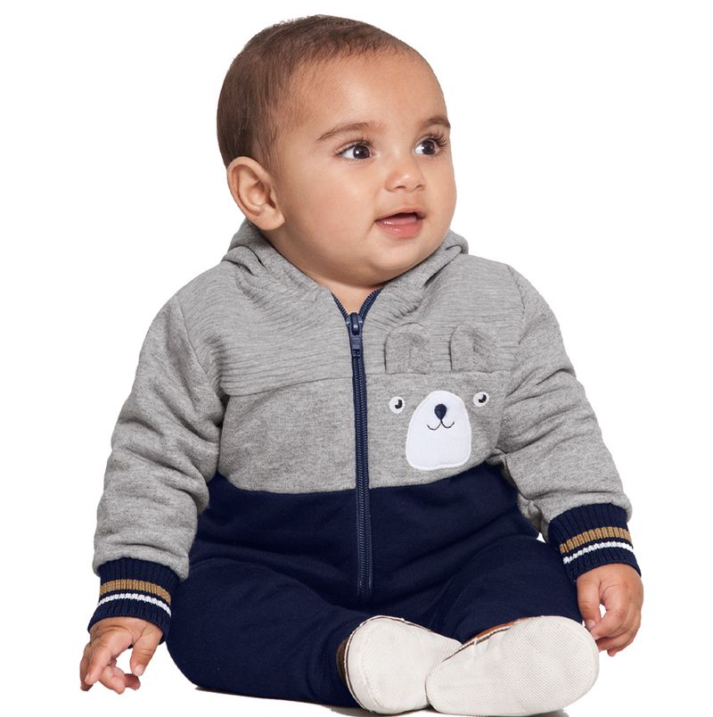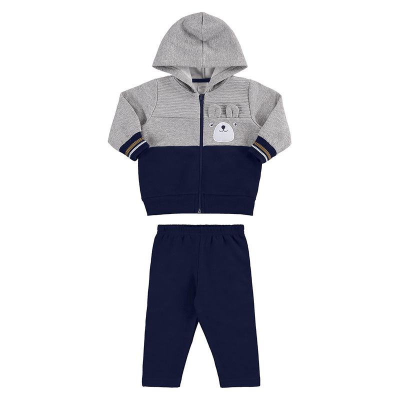 Conjunto Jaqueta Ursinho e Calça Masculina Bebê Alakazoo| em Moletom Felpado e Malha Wave