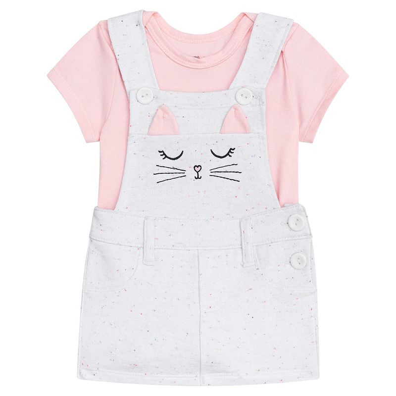 Conjunto Jardineira e Body Feminina Bebê Kukiê em Cotton e Moletom