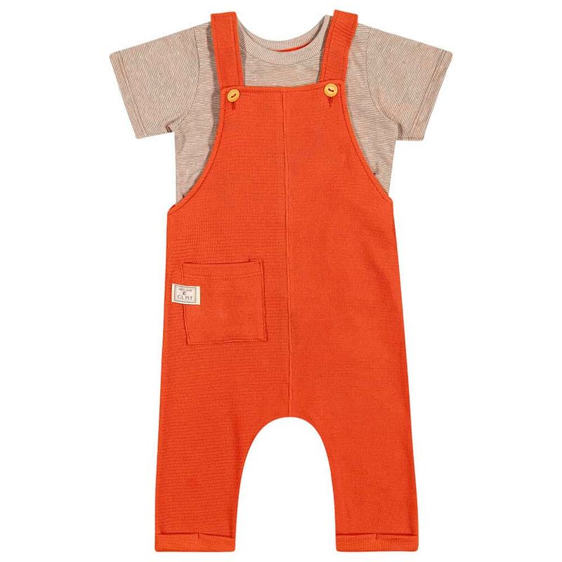 Conjunto Jardineira e Camiseta de Menino Bebê Coloritta em Malha Eco Botonê e Malha Texturizada