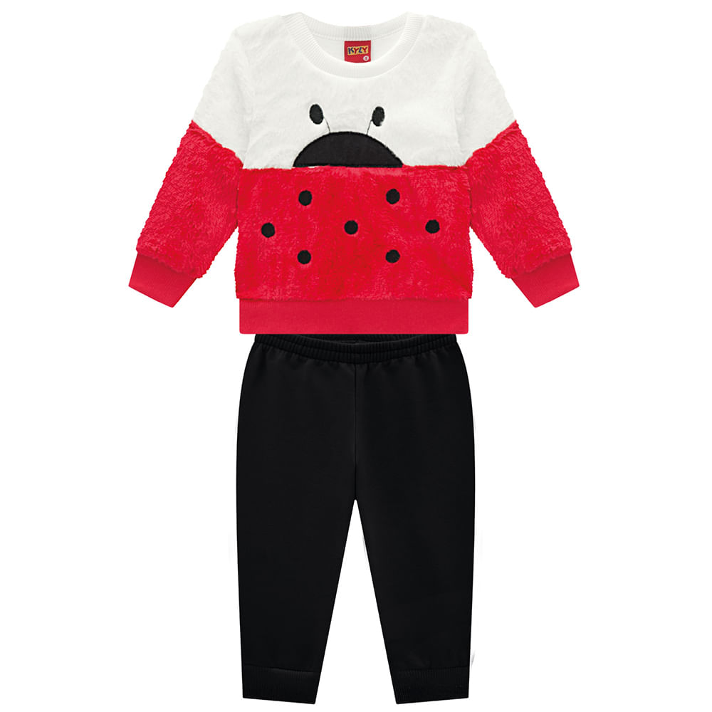 Conjunto Jardineira e Camiseta Mickey Bebê Marlan em Moletom Sublime Felpado e Meia Malha Penteada