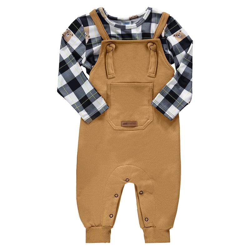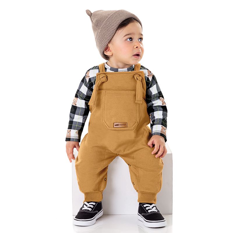 Conjunto Jardineira em Moletom e Camiseta Manga Longa Marlan 20711