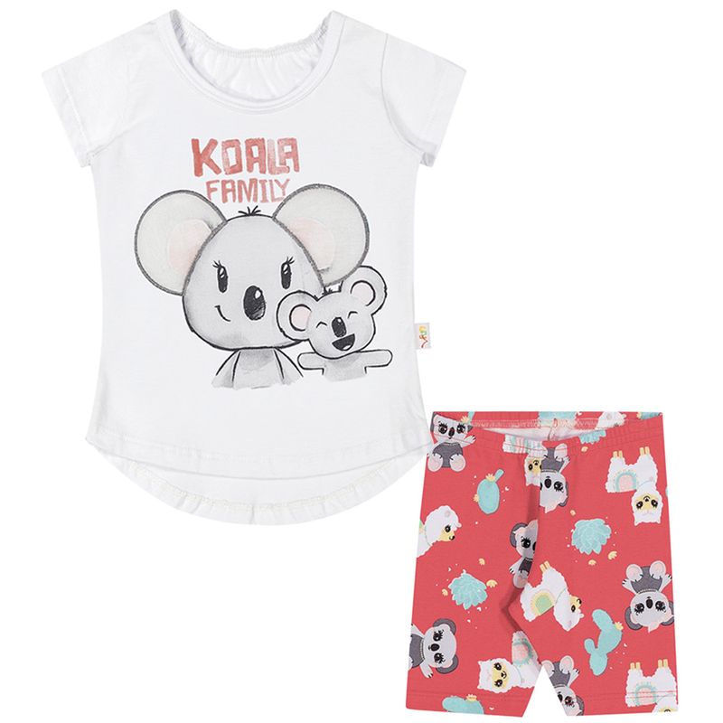 Conjunto Koala Blusa e Ciclista Bebê Elian em Meia Malha Penteada e Cotton Confort