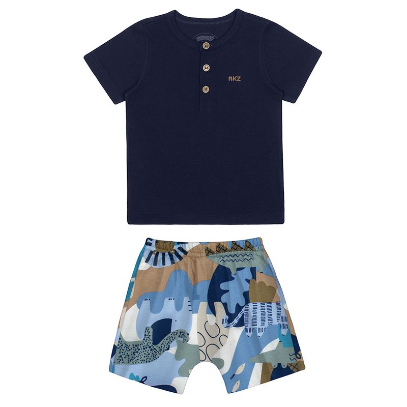 Conjunto Masculino Bebê Alakazoo 39726 Material: MEIA MALHA PENTEADA E MOLETOM Manga: MANGA CURTA Abertura: FECHADA