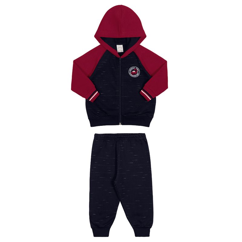 Conjunto Masculino Bebê Alakazoo 66453 Material: MOLETOM FLAME JET E MOLETOM NEW WAVE Manga: MANGA LONGA COM PUNHO Barra: BARRA COM PUNHO Abertura: ZIPER Bordado na Blusa