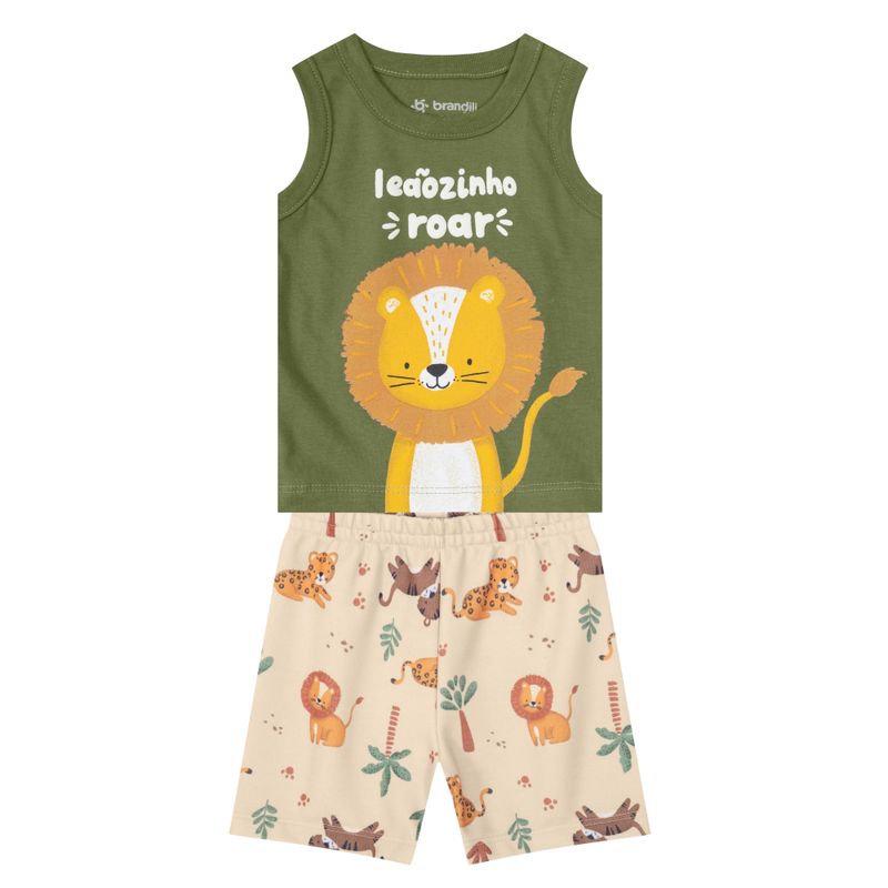 Conjunto Masculino Bebê Brandili 26089 Material: MEIA MALHA E MOLETINHO Manga: REGATA Abertura: FECHADA Estampa Puff