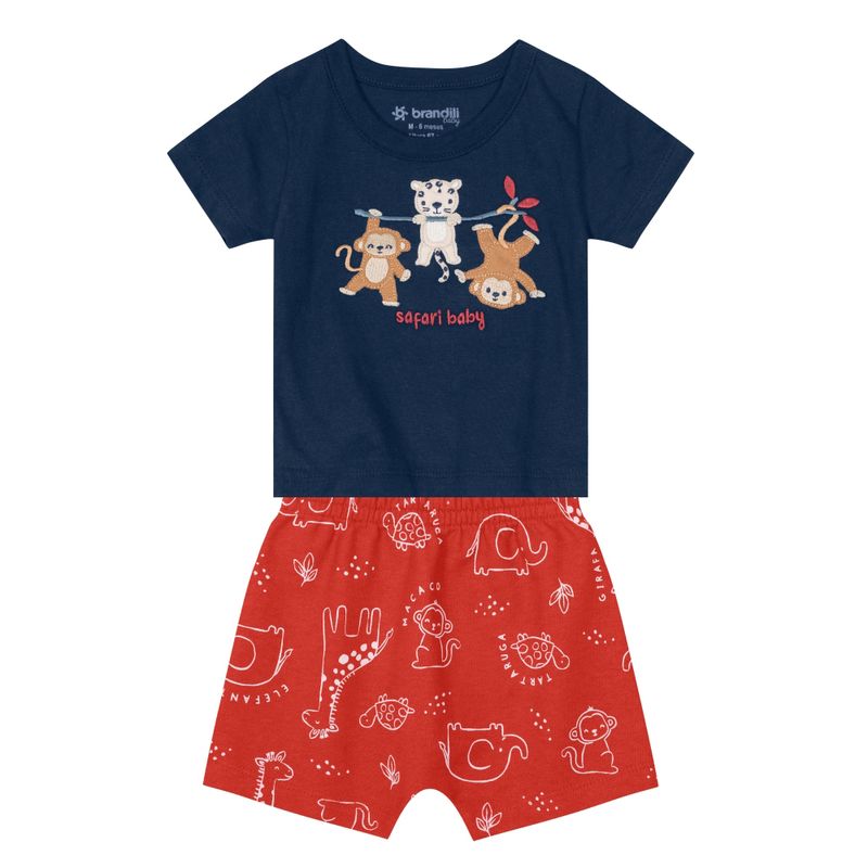 Conjunto Masculino Bebê Brandili 26091 Material: MEIA MALHA E MOLETINHO Manga: MANGA CURTA Abertura: FECHADA Aplique Bordado