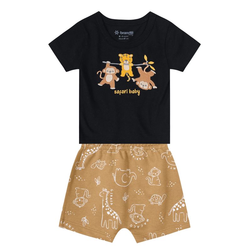 Conjunto Masculino Bebê Brandili 26091 Material: MEIA MALHA E MOLETINHO Manga: MANGA CURTA Abertura: FECHADA Aplique Bordado