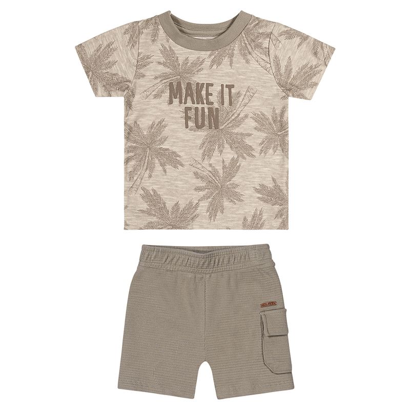 Conjunto Masculino Bebê Coloritta 70042 Material: MALHA FLAME/ MALHA TEXTURIZADA Manga: MANGA CURTA Abertura: FECHADA Estampa c/ Relevo