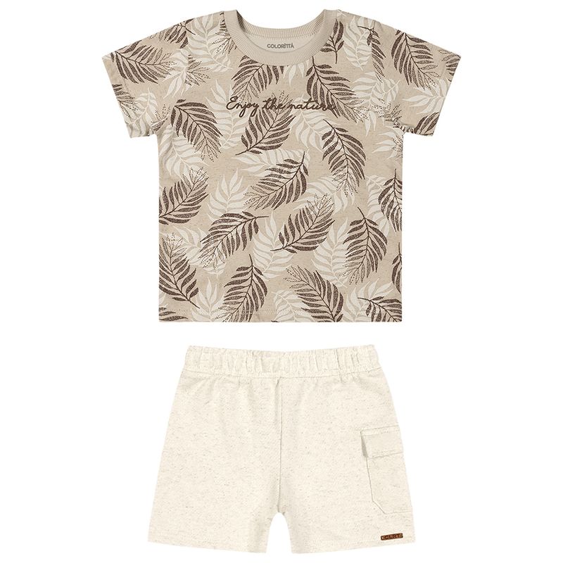 Conjunto Masculino Bebê Coloritta 70107 Material: MALHA ECO LINHO ESTAMPADA E MOLETOM ECO LINHO Manga: MANGA CURTA Abertura: FECHADA Estampa com Relevo