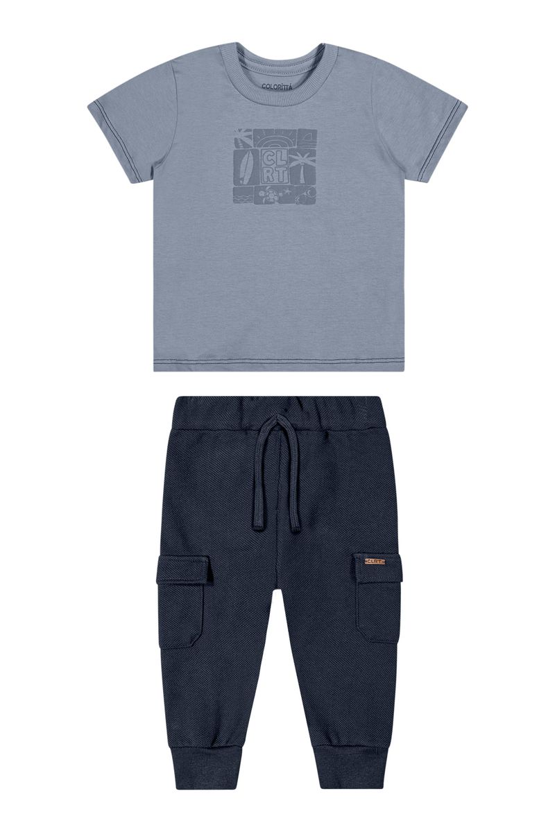 Conjunto Masculino Bebê Coloritta 70149 Material: MEIA MALHA E PIQUÊ ESTRUTURADO Manga: MANGA CURTA Barra: BARRA COM PUNHO Abertura: FECHADA Estampa com Relevo